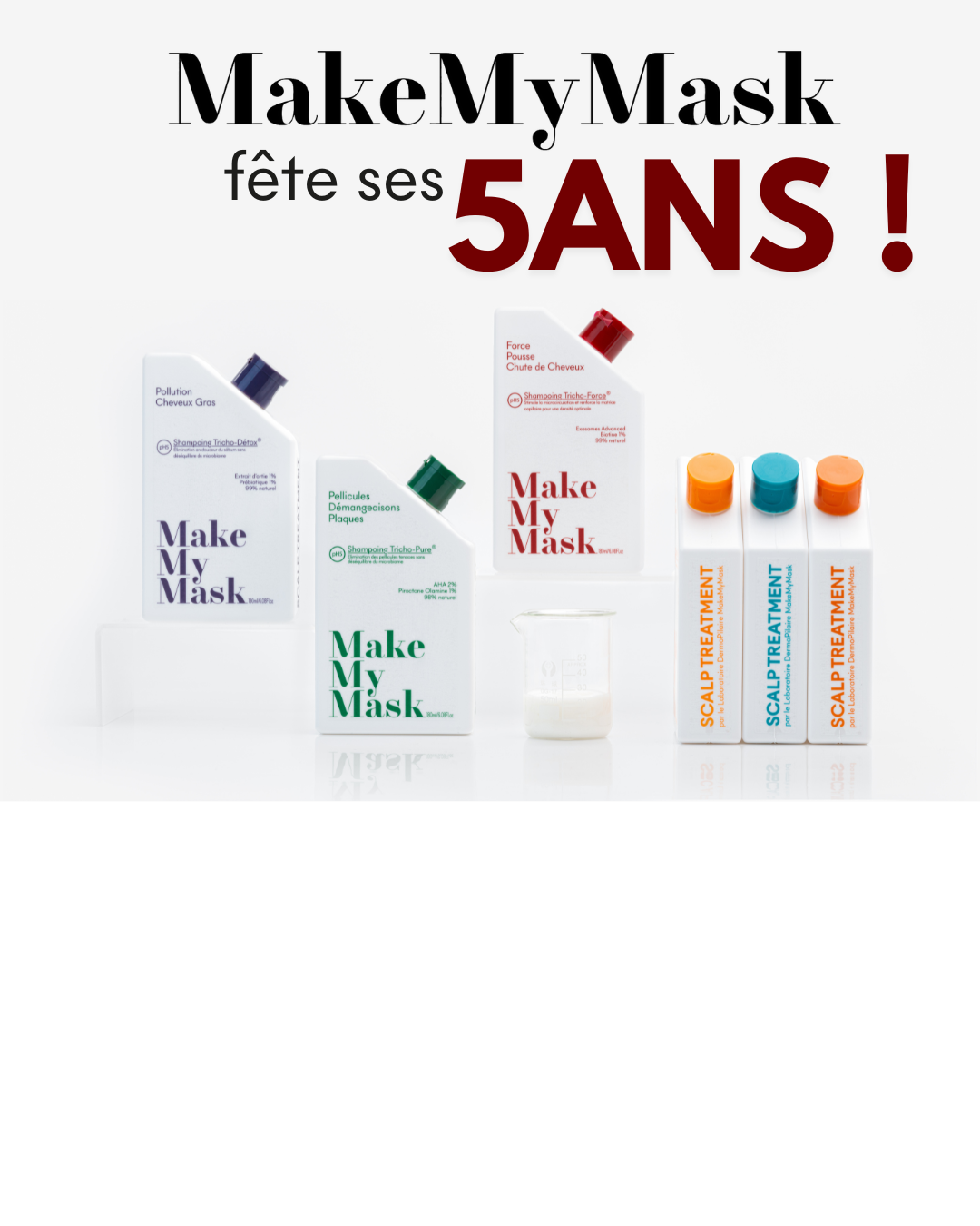 Après plus de 20 ans avec des problèmes de cuir chevelu (pellicules, démangeaisons) avec impossibilité de garder des cheveux non gras plus de 24heures, les produits (les 3) du protocole Make My Mask ont changé ma vie, j'ai des cheveux propres, non gras, plus de pellicules, et me permet de garder des cheveux sains comme j'en avais perdu le souvenir. Merci à vous pour vos produits. Maintenant une crainte arrive, que vais je faire si vous arrêtez la production ? :)